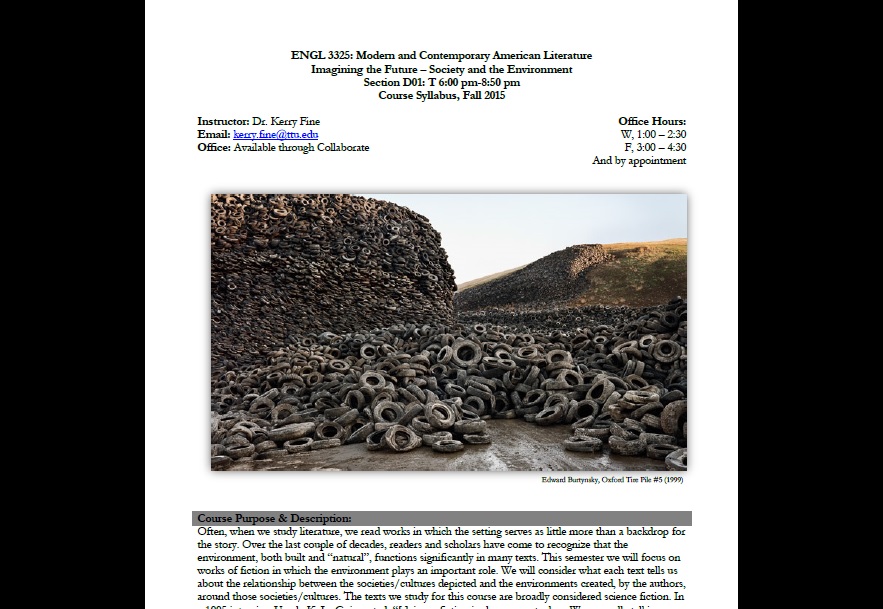 ENGL 3325: Modern and Contemporary American Literature – Imagining the Future; Society and the Environment, Fall 2015. Texas Tech University.