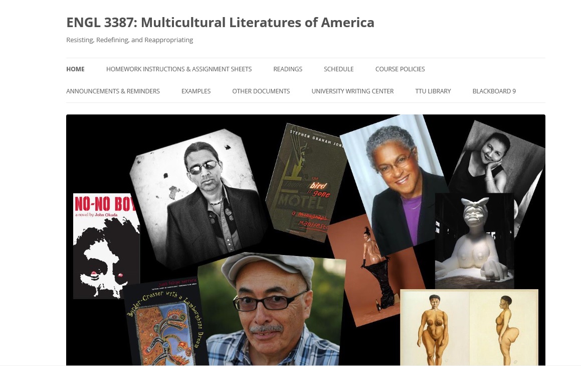 ENGL 3387: Multicultural Literatures of America – Resisting, Redefining, and Reappropriating, Summer I. Texas Tech University.